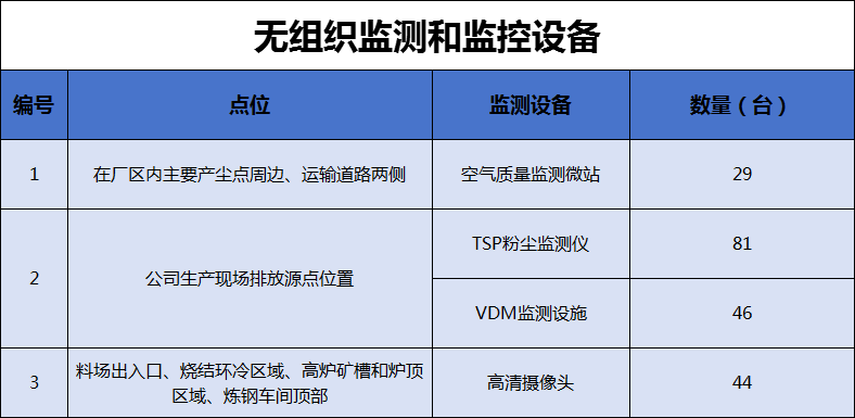 長(zhǎng)強(qiáng)鋼鐵對(duì)超低排放內(nèi)容進(jìn)行了全面自動(dòng)監(jiān)控、過(guò)程監(jiān)控和視頻監(jiān)控設(shè)施建設(shè)。在廠區(qū)內(nèi)主要產(chǎn)塵點(diǎn)周邊、運(yùn)輸?shù)缆穬蓚?cè)布設(shè)空氣微站點(diǎn)共29個(gè),在公司生產(chǎn)現(xiàn)場(chǎng)排放源點(diǎn)位置安裝了TSP數(shù)量81臺(tái)、VDM數(shù)量46臺(tái)等監(jiān)測(cè)設(shè)備,對(duì)料場(chǎng)出入口、燒結(jié)環(huán)冷區(qū)域、高爐礦槽和爐頂區(qū)域、煉鋼車間頂部安裝高清視頻監(jiān)控設(shè)施44臺(tái),進(jìn)行了有效監(jiān)管,相關(guān)視頻保存三個(gè)月以上。建設(shè)門禁系統(tǒng)和視頻監(jiān)控系統(tǒng),監(jiān)控運(yùn)輸車輛進(jìn)出廠區(qū)情況。