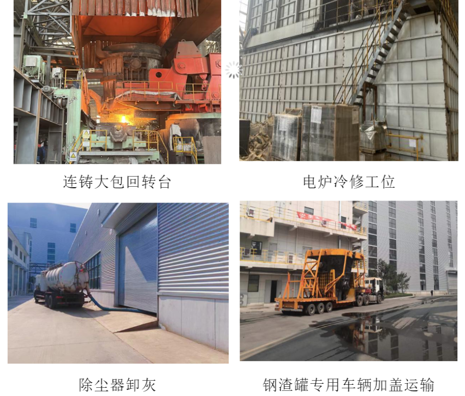 中首特鋼生產(chǎn)工藝86個無組織點位,其中企業(yè)破碎機、振動篩等生產(chǎn)設(shè)施經(jīng)現(xiàn)場核查實現(xiàn)了封閉,并配備了除塵裝置;煉鋼電爐、精煉爐、連鑄大包回轉(zhuǎn)臺、連鑄火焰切割、鋼包熱修工位等生產(chǎn)工藝主要產(chǎn)塵點位均配備集塵罩與收塵措施;軋鋼線粗軋機、精軋機均配備了除塵措施。