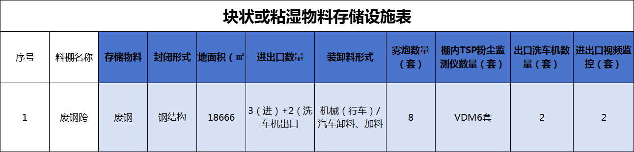 航達(dá)鋼鐵主要的塊狀或粘濕物料存儲(chǔ)的料場(chǎng)(棚)共計(jì)1處,為廢鋼跨,進(jìn)行了相關(guān)的治理措施。