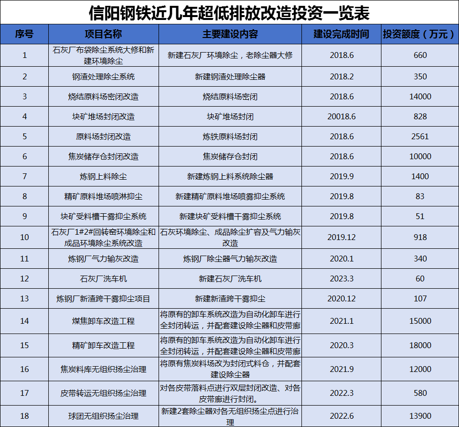 信陽鋼鐵嚴(yán)格響應(yīng)國家、生態(tài)環(huán)境部門號召,對照超低排放要求,先后投資9.1674億元,實施了一系列超低排放改造項目,并于2025年7月完成無組織排放評估并在中鋼協(xié)網(wǎng)站進(jìn)行了公示。