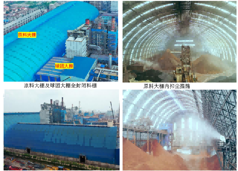 信陽鋼鐵所使用的煤、焦炭、石灰石、塊礦、礦粉等塊狀或粘濕物料均儲存于封閉料場或筒倉中,料場霧炮、汽車沖洗等配套抑塵措施建設(shè)完備,物料儲存控制措施滿足《意見》要求。