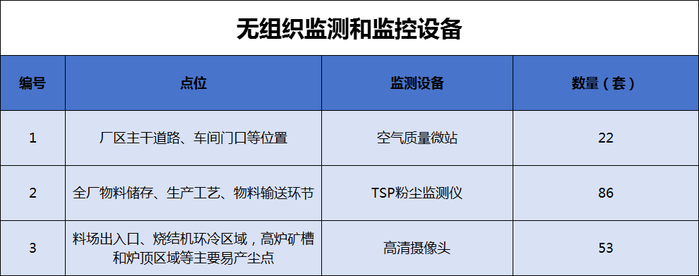 為掌握全廠廢氣污染物治理設(shè)施的運(yùn)行效果及廠區(qū)內(nèi)不同生產(chǎn)單元的環(huán)境控制質(zhì)量情況,信陽鋼鐵共安裝空氣質(zhì)量微站點22套、高清視頻53套、TSP監(jiān)測儀86套,實時監(jiān)測廠區(qū)的無組織排放情況,以便及時治理。