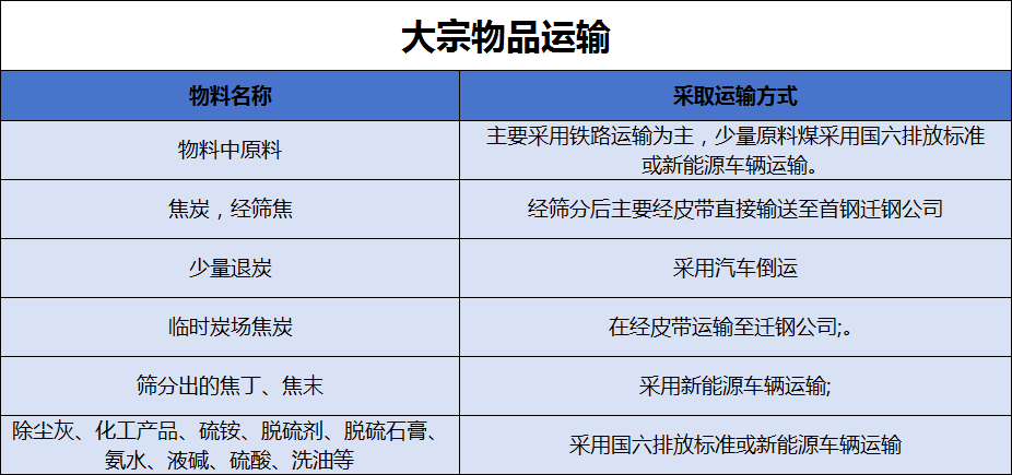 遷安中化公司進(jìn)出廠的物料和產(chǎn)品主要包括原料煤(洗精煤)、焦炭、焦丁、焦末、除塵灰、粗苯、焦油、硫銨、硫磺、脫硫劑、脫硫石膏、氨水、液堿、硫酸、洗油等;運(yùn)輸方式包括鐵路運(yùn)輸、皮帶運(yùn)輸和汽車(chē)運(yùn)輸。