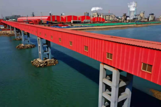 青島特鋼進廠大宗物料和出廠產(chǎn)品主要通過鐵路、水運、皮帶、汽車四種方式運輸,建有從董家口港運至廠區(qū)原料大棚的跨海皮帶通廊。進廠主要原輔材料集中儲存在封閉原料大棚及封閉筒倉內(nèi),運輸物料種類主要有鐵礦石、煤炭、廢鋼、石灰粉、石灰石、白云石、鐵合金等。出廠運輸產(chǎn)品及副產(chǎn)品種類主要為鋼材、水渣等。