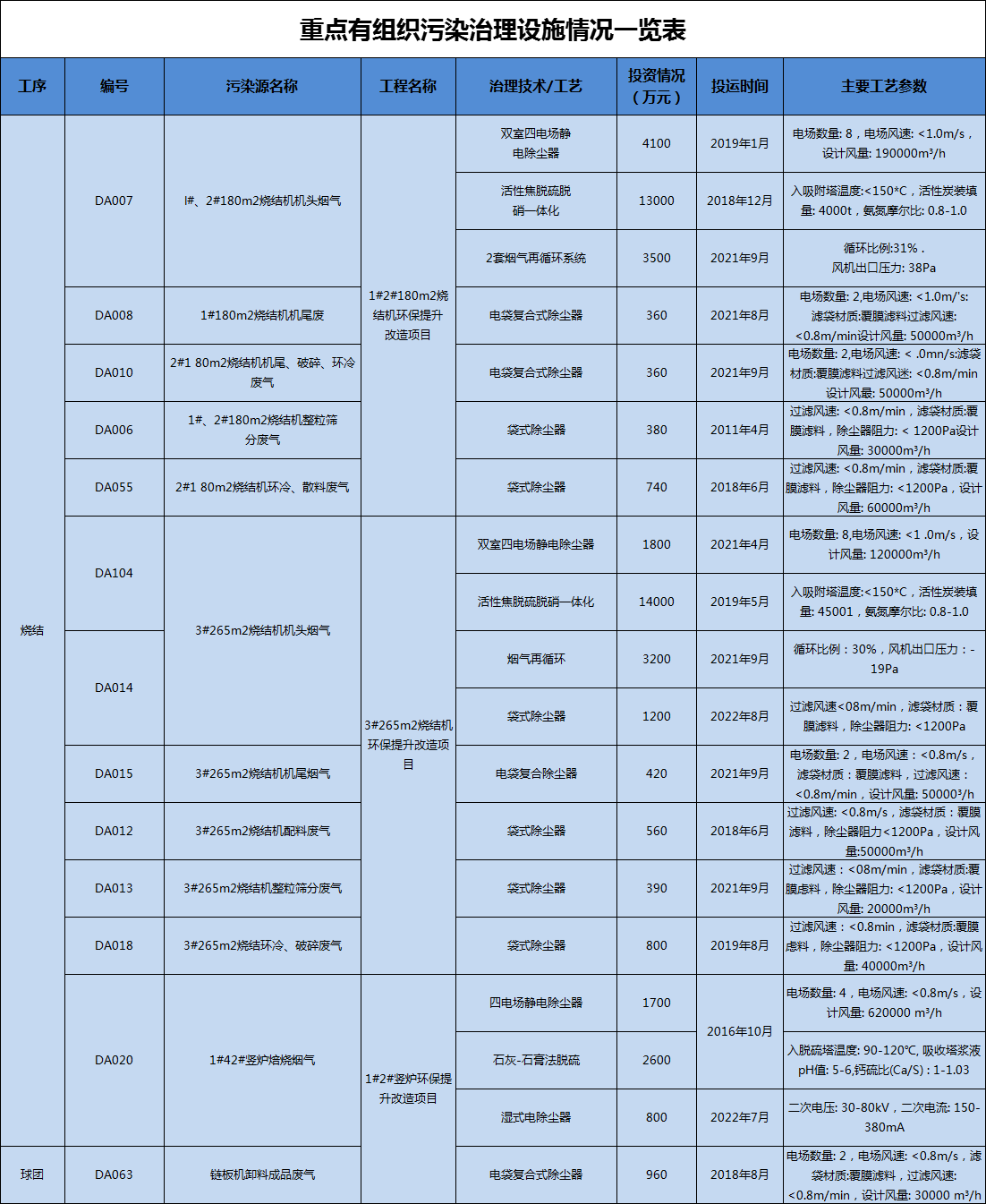 公司按照超低排放要求,在燒結(jié)機(jī)機(jī)頭、燒結(jié)機(jī)機(jī)尾、球團(tuán)焙燒、高爐礦槽、高爐出鐵場(chǎng)、轉(zhuǎn)爐二次煙氣、石灰窯、自備電站等共計(jì)18個(gè)重點(diǎn)有組織排放口安裝了DCS系統(tǒng),DCS中接入了主要生產(chǎn)設(shè)備的關(guān)鍵生產(chǎn)參數(shù)、環(huán)保治理設(shè)施的運(yùn)行參數(shù)以及污染物排放參數(shù),并可同時(shí)在同一界面查詢生產(chǎn)設(shè)施和環(huán)保治理設(shè)施運(yùn)行的關(guān)鍵參數(shù)以及污染物排放參數(shù),所有數(shù)據(jù)具備保存5年以上歷史數(shù)據(jù)的能力。