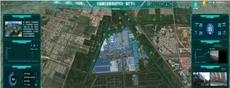 為了全面掌握廠區(qū)內的揚塵情況、及時治理生產過程中的無組織排放揚塵,中新鋼鐵建立了無組織排放管控治理平臺,平臺集成了原料、球團、燒結、高爐、石灰、煉鋼、軋鋼等生產工序的生產運行信號、治理運行信號、環(huán)境監(jiān)測數據、視頻監(jiān)控數據,包括首頁大屏,排放源清單數據管理,重點污染區(qū)域視頻監(jiān)控數據據管理,全廠重點污染區(qū)域的視頻數據實時調閱、存儲、查詢、回放,全廠環(huán)境空氣質量監(jiān)測微站數據集中管理及分析,全廠產塵源TSP監(jiān)測站點數據集中管理及分析,全廠治理設備運行狀態(tài)數據集中管理及.分析,全廠無組織對應生產設備運行狀態(tài)數據集中管理及分析,全廠無組織排放治理過程數據集中管理及呈現,全廠生產、治理、監(jiān)控數據集中同步展示。