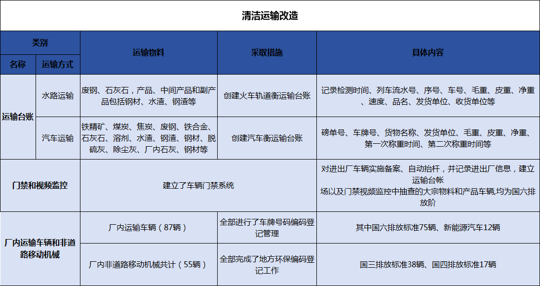 中新鋼鐵按照生態(tài)環(huán)境部文件要求,組織開展了清潔運輸超低排放改造工作,在運輸臺賬、門禁和視頻監(jiān)控、廠內運輸車輛和非道路移動機械運輸等都進行了相關改造,以此達到了超低排放要求。