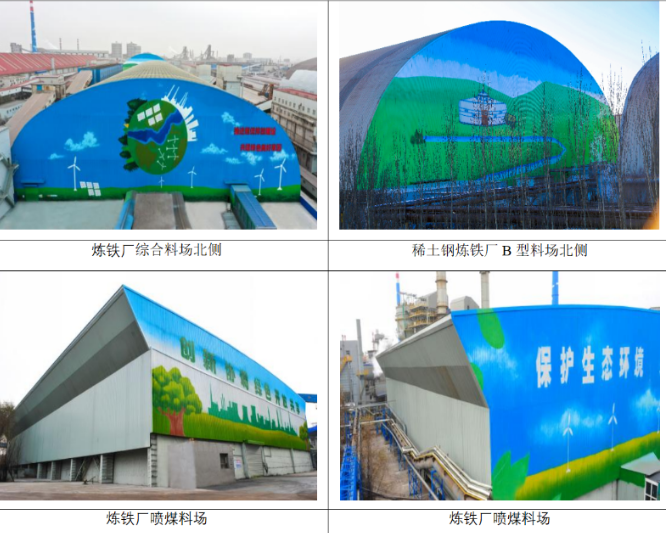 目前企業(yè)所使用的鐵精粉、塊礦、焦炭、煤炭等塊狀及粘濕物料均儲存于16個封閉料場中;粉狀物料及干式物料儲存于114個簡倉之中;料場霧炮、汽車沖洗等配套抑塵措施建設(shè)完備。