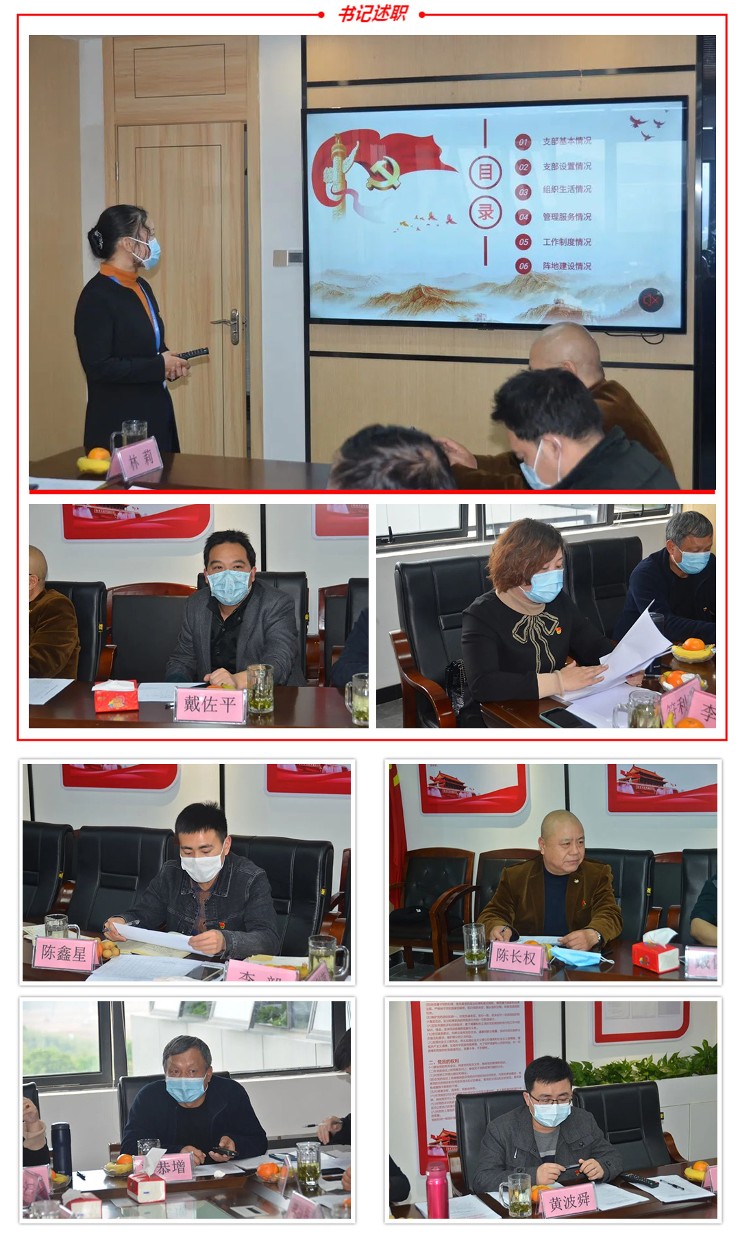 考核規(guī)則宣讀完畢之后,進入第二項議程,各支部書記進行2019年度述職。
