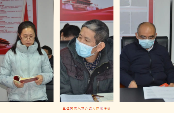 三位同志的入黨介紹人對(duì)張健、周嘉玲、胡婷三位同志在預(yù)備期中的表現(xiàn)作出評(píng)價(jià);隨后,支部委員會(huì)黨員代表及群眾代表對(duì)張健、周嘉玲、胡婷三位同志進(jìn)行評(píng)價(jià)并提出建議,希望他們緊跟時(shí)事,加強(qiáng)黨員的自我修養(yǎng),在工作中不斷進(jìn)取,發(fā)揮黨員的榜樣作用。