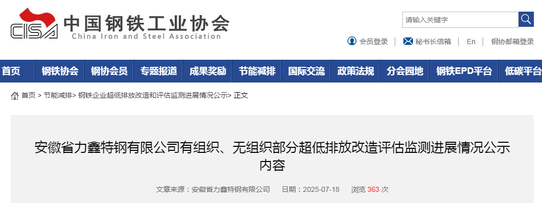 超低排放改造成功通過(guò)驗(yàn)收,并正式在中國(guó)鋼鐵工業(yè)協(xié)會(huì)(中鋼協(xié))完成掛網(wǎng)公示,標(biāo)志著企業(yè)在綠色低碳轉(zhuǎn)型道路上邁出了關(guān)鍵一步。