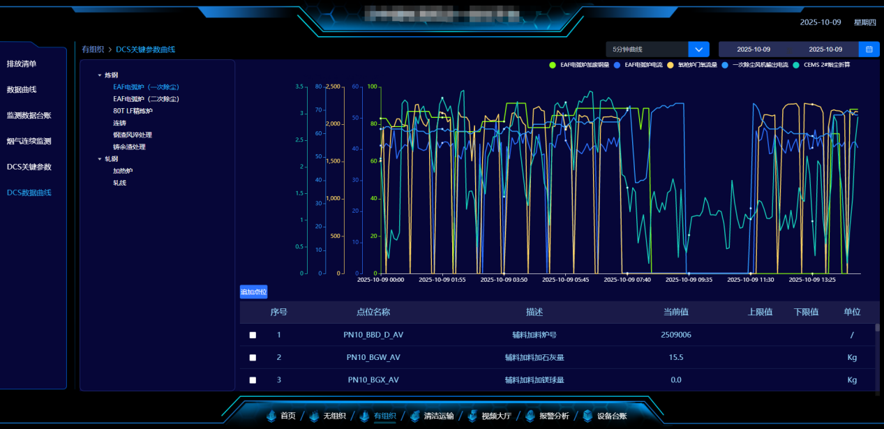 根據(jù)現(xiàn)場調(diào)研情況,新增配套DCS環(huán)保數(shù)采系統(tǒng),將電爐、精煉爐、VD爐、軋鋼加熱爐和鋼渣處理系統(tǒng)及其配套的環(huán)保治理設(shè)施新增配套DCS環(huán)保數(shù)采系統(tǒng),將對應(yīng)的治理設(shè)施、生產(chǎn)設(shè)施、在線監(jiān)測的相關(guān)記錄進(jìn)行整合,實(shí)現(xiàn)相關(guān)運(yùn)行參數(shù)中任意參數(shù)曲線可組合至同一個(gè)界面中查看的功能要求。同時(shí),在電爐主控室設(shè)置獨(dú)立DCS工程師站,使其能夠獨(dú)立展示各項(xiàng)參數(shù)。