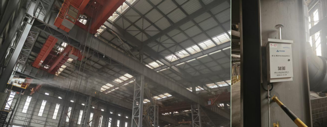 在石灰大棚、鋼渣中間庫及鋼渣車間等重點區(qū)域,同步安裝了超細(xì)智能霧炮與TSP粉塵監(jiān)測儀。系統(tǒng)平臺預(yù)設(shè)粉塵濃度報警閾值,當(dāng)TSP濃度超標(biāo)時,可自動遠(yuǎn)程啟停霧炮設(shè)備,實現(xiàn)抑塵治理的閉環(huán)控制,確保粉塵濃度快速恢復(fù)至正常范圍。