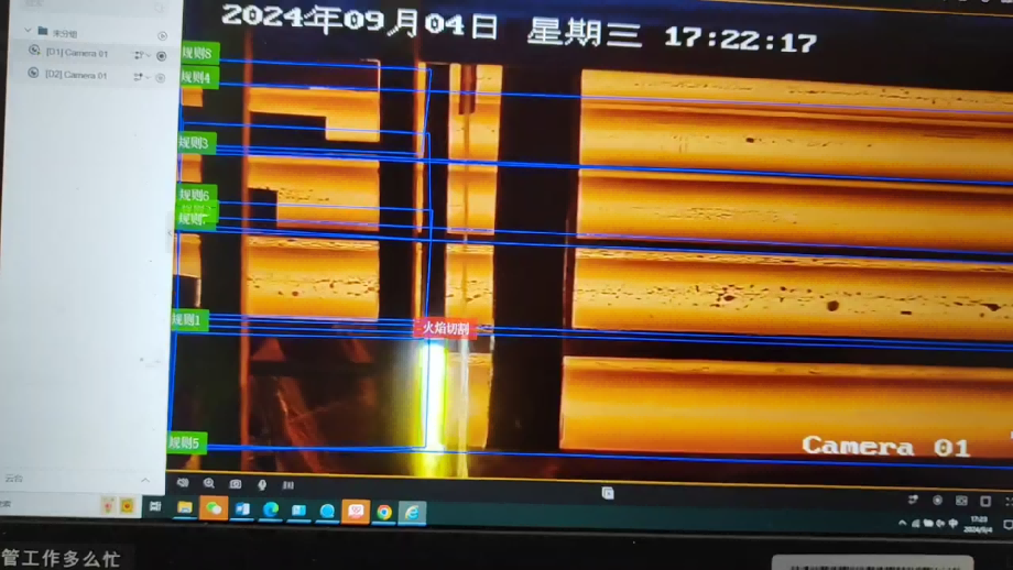 基于AI識別的氫氧火焰切割系統(tǒng)通過視頻AI分析,判斷切斷的時刻,通過報(bào)警輸出對接PLC控制系統(tǒng),PLC控制系統(tǒng)收到切斷的電平信號后,立即關(guān)閉切割氣體,可有效節(jié)約燃?xì)獾睦速M(fèi)。如果PLC一直沒收到切斷電平信號則繼續(xù)執(zhí)行原來PLC編碼器的方案,以保證產(chǎn)線正常生產(chǎn)。