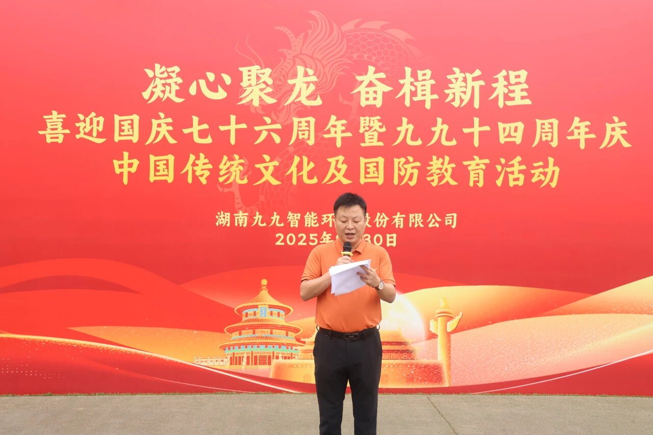 活動伊始,董事長劉黎明先生發(fā)表致辭。他表示,在中華人民共和國成立七十六周年的榮耀時(shí)刻,同時(shí)迎來了九九智能環(huán)保十四周歲生日,公司以“中國鼓、中國龍”這一傳統(tǒng)文化精髓結(jié)合國防教育的形式慶祝,寓意深遠(yuǎn)。