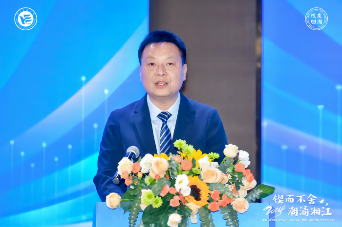 湖南省“校友回湘”工作專班執(zhí)行主任周韶峰深度解讀了“校友+人才”返鄉(xiāng)戰(zhàn)略,“校友+科技”興湘計劃,“校友+項目”聚湘行動,“校友+企業(yè)”來湘趨勢,以及“校友+教育”強湘愿景這五大核心內(nèi)容。湖南工程學(xué)院黨委書記黃昕現(xiàn)場分享了對“校友回湘”工作的獨到見解與殷切期望,并為廣大校友勾畫出了未來發(fā)展的壯麗藍圖。
