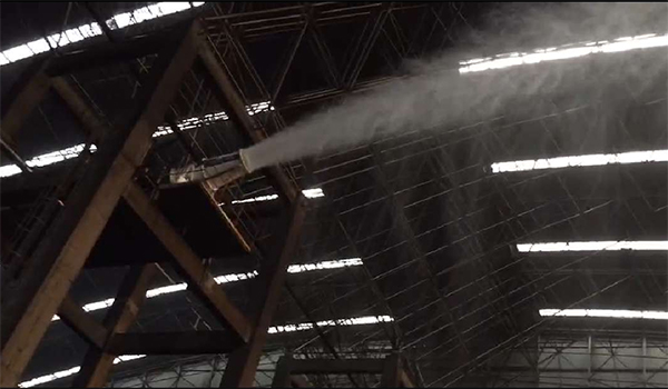 1)在原料堆場或密閉棚根據(jù)原料對水份含量的要求分別配置九九環(huán)保智能濕霧霧炮機和智能微霧霧炮機,水霧濃度和覆蓋面積都根據(jù)排放源污染物濃度和發(fā)生面積科學(xué)計算確定。