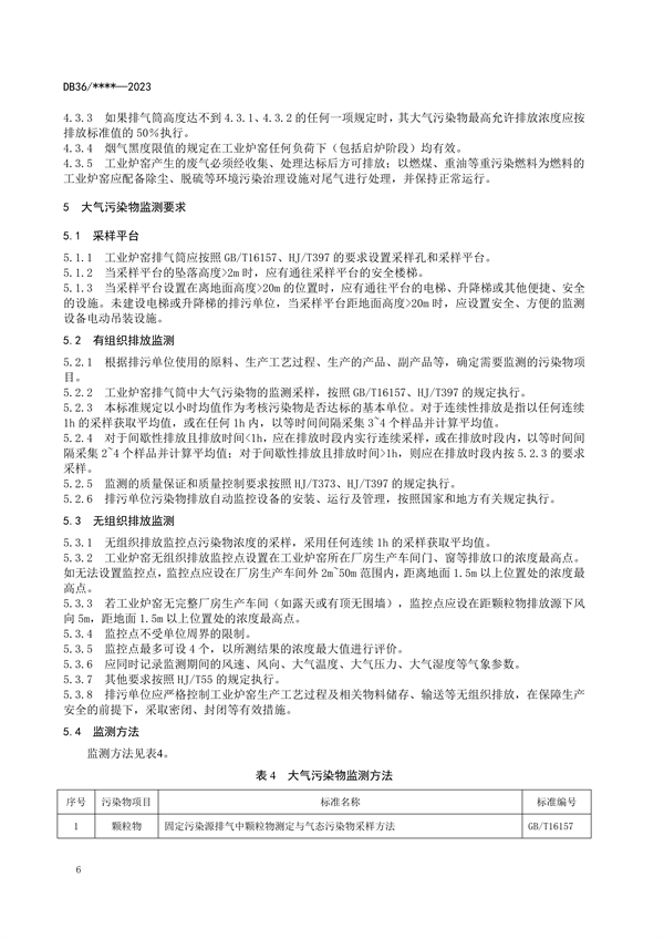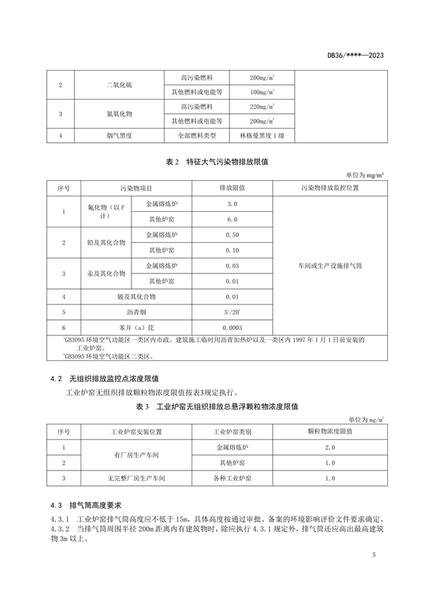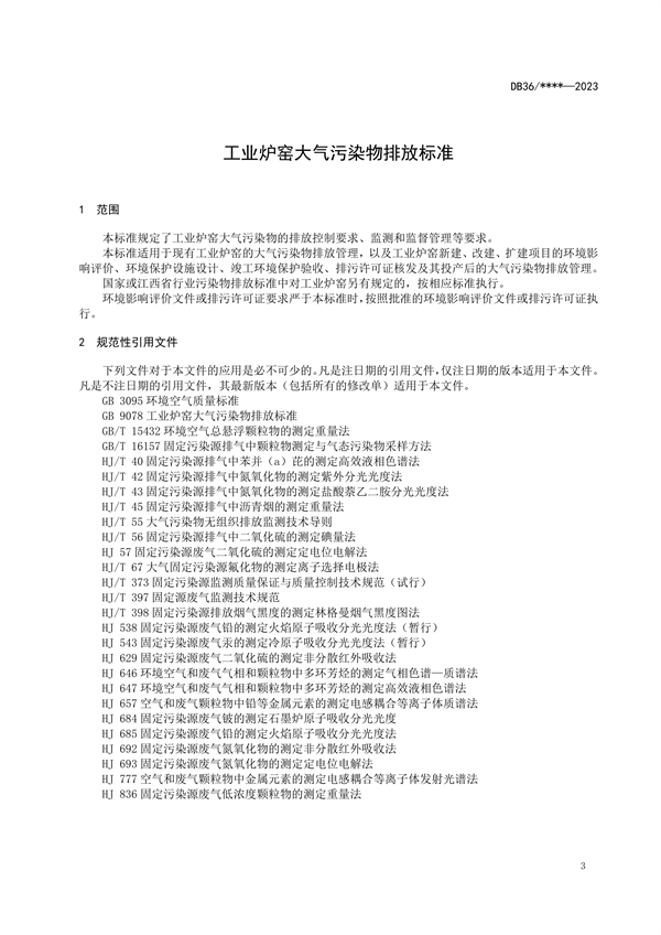 江西省工業(yè)爐窯大氣污染物排放標(biāo)準(zhǔn)(試行)(征求意見稿)