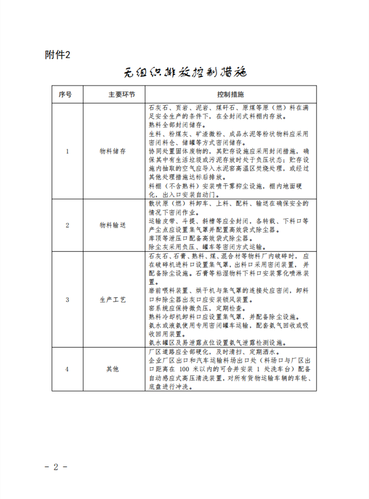 (二)無(wú)組織排放控制要求。加強(qiáng)物料儲(chǔ)存、物料輸送及生產(chǎn)工藝過(guò)程無(wú)組織排放控制。在保障安全生產(chǎn)的前提下,針對(duì)性采取封閉、密閉等治理措施,有效提高廢氣收集效率,產(chǎn)塵點(diǎn)及車(chē)間不得有可見(jiàn)煙粉塵外逸(詳見(jiàn)附件2)。